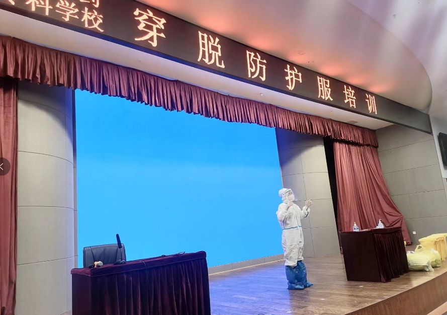 为更好地服务疫情防控需要,2022年11月1日下午,在学校办公楼一楼报告厅,学校组织员工进行穿脱防护服要点讲解与培训,现总结要点如下: