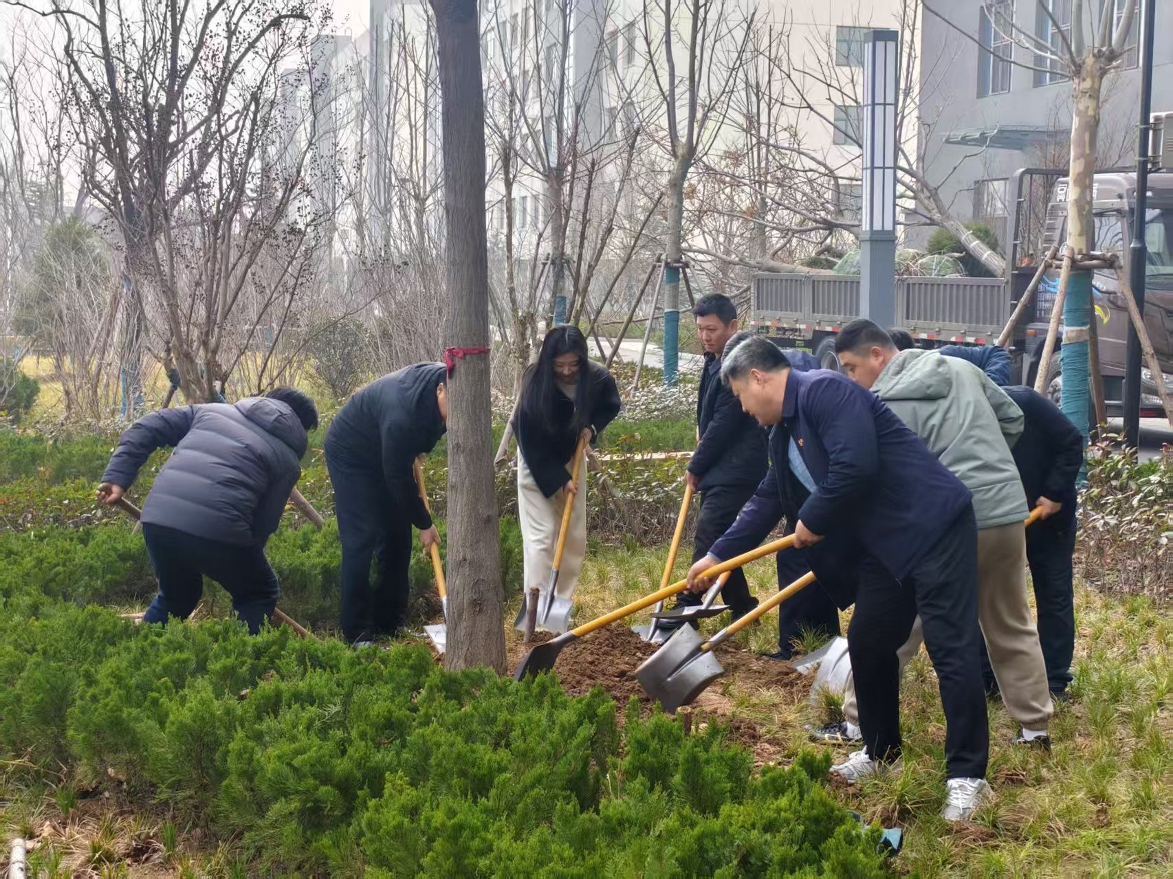 时逢三月,绿意正新。为深入贯彻落实习近平生态文明思想,充分发挥先锋模范作用,进一步丰富主题党日活动,山东中医药高等专科学校总务资产党支部开展义务植树主题党日活动,植树过程中,大家牢牢遵循“一垫二提三埋四踩”的植树技巧,配合协作,在回填熟土后将树苗一一栽种,分三次埋土并踩实、浇水,确保种植成活率。经过两个小时的努力,种植樱花树、玉兰树二十余棵。